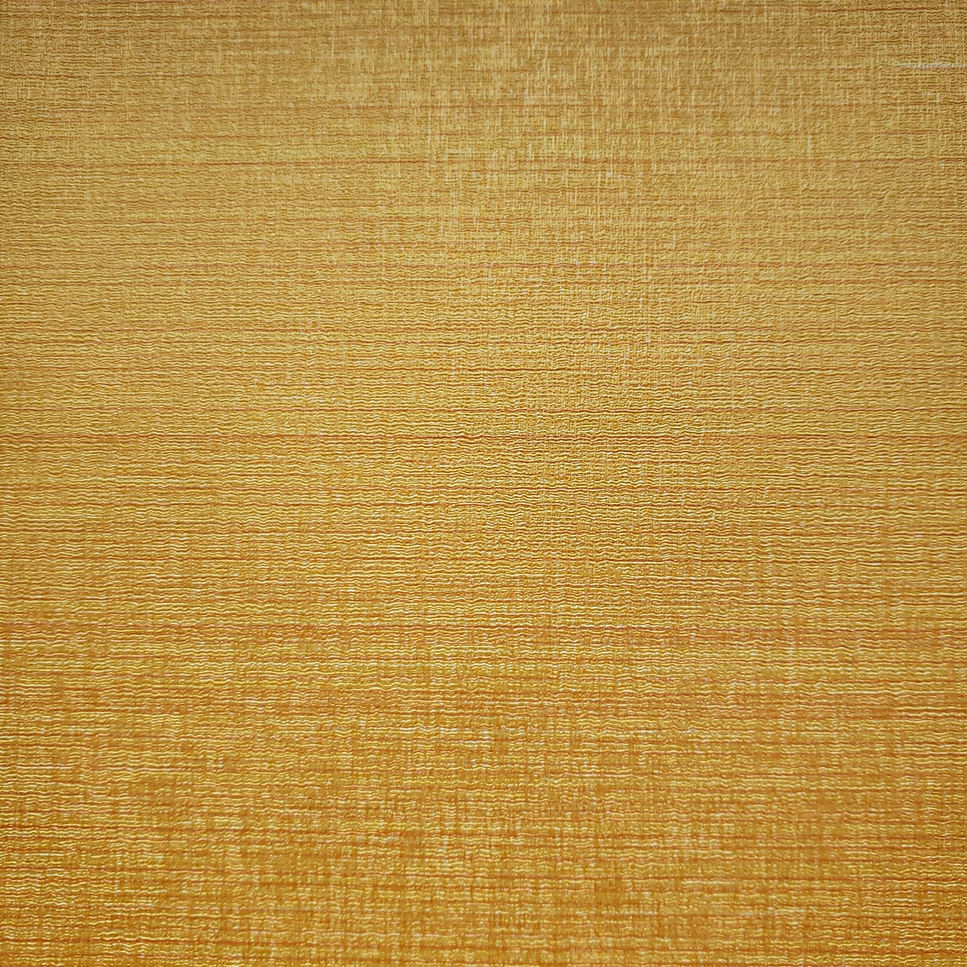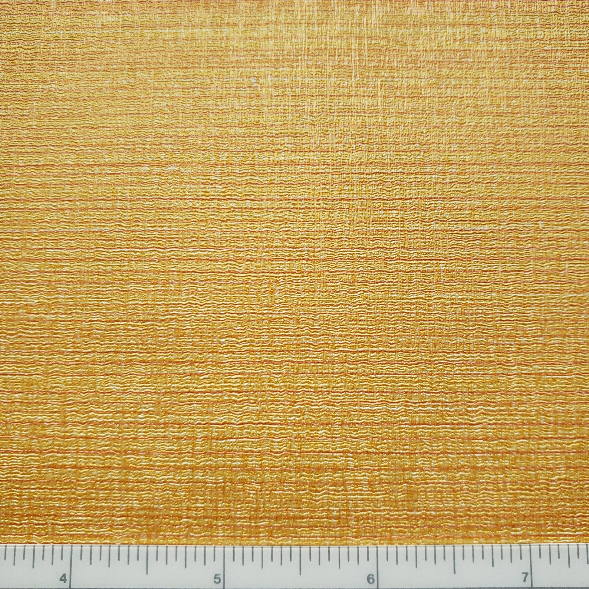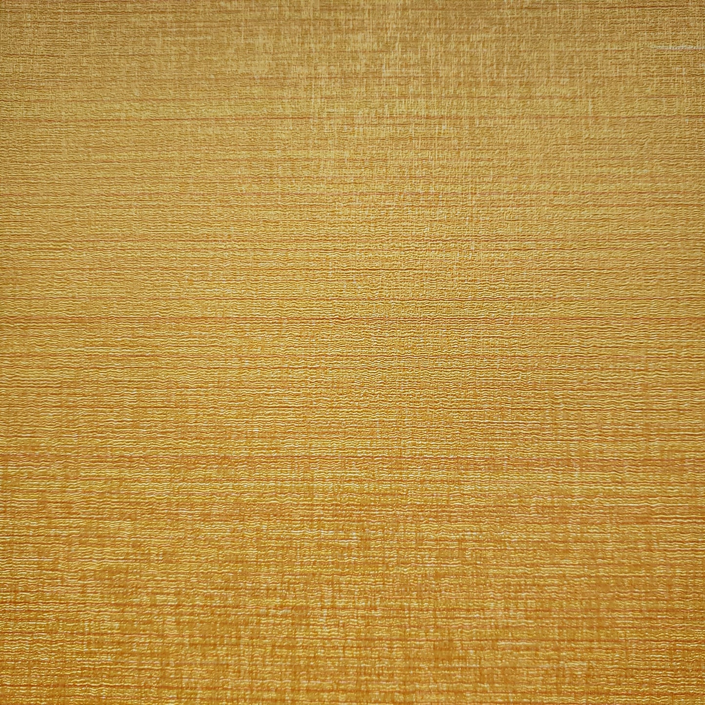 Matte/shiny finish on a horizontally linear stripe pattern of various sunny yellow and oranges on a fine weave texture