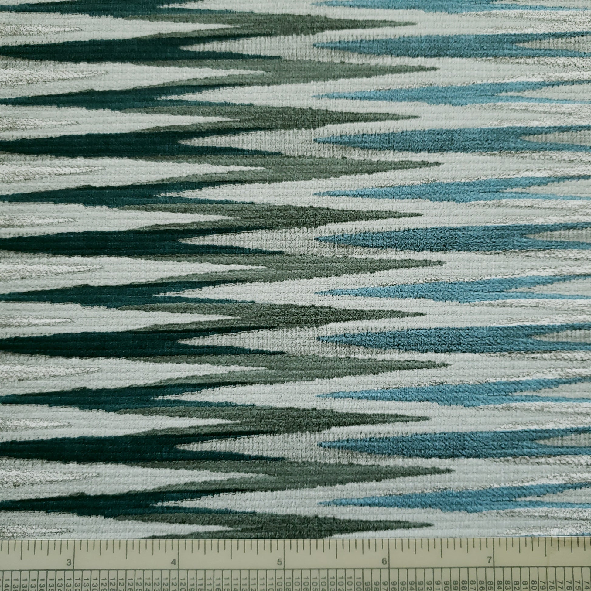 Matte finish on a not quite zig zag pattern with subtle beige and darker grays that makes you do a double take.
