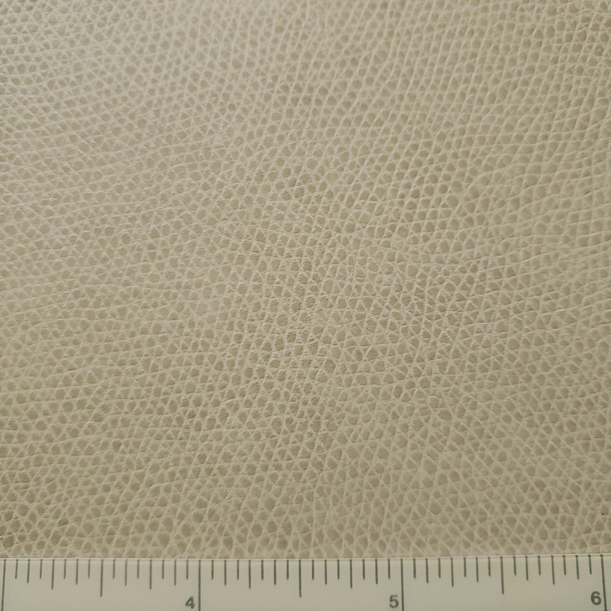 Semi-matte finish with a fine animal grain in a light beige color with a warm undertone