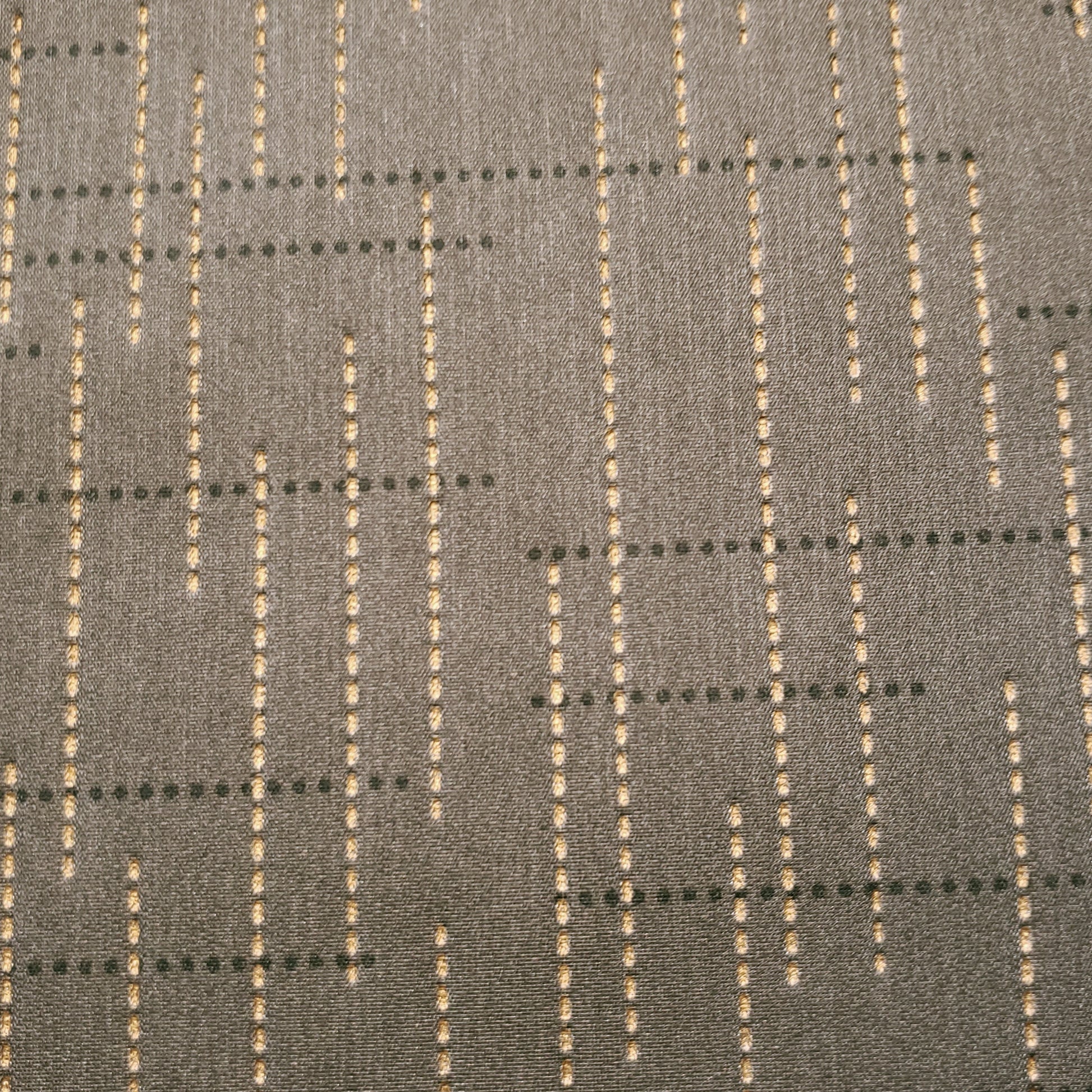 Matte metallic finish on a interesting uneven gridded pattern with dark brown dotted lines running horizontally and the bright copper dotted vertical lines are impressed on a medium dark brown color background
