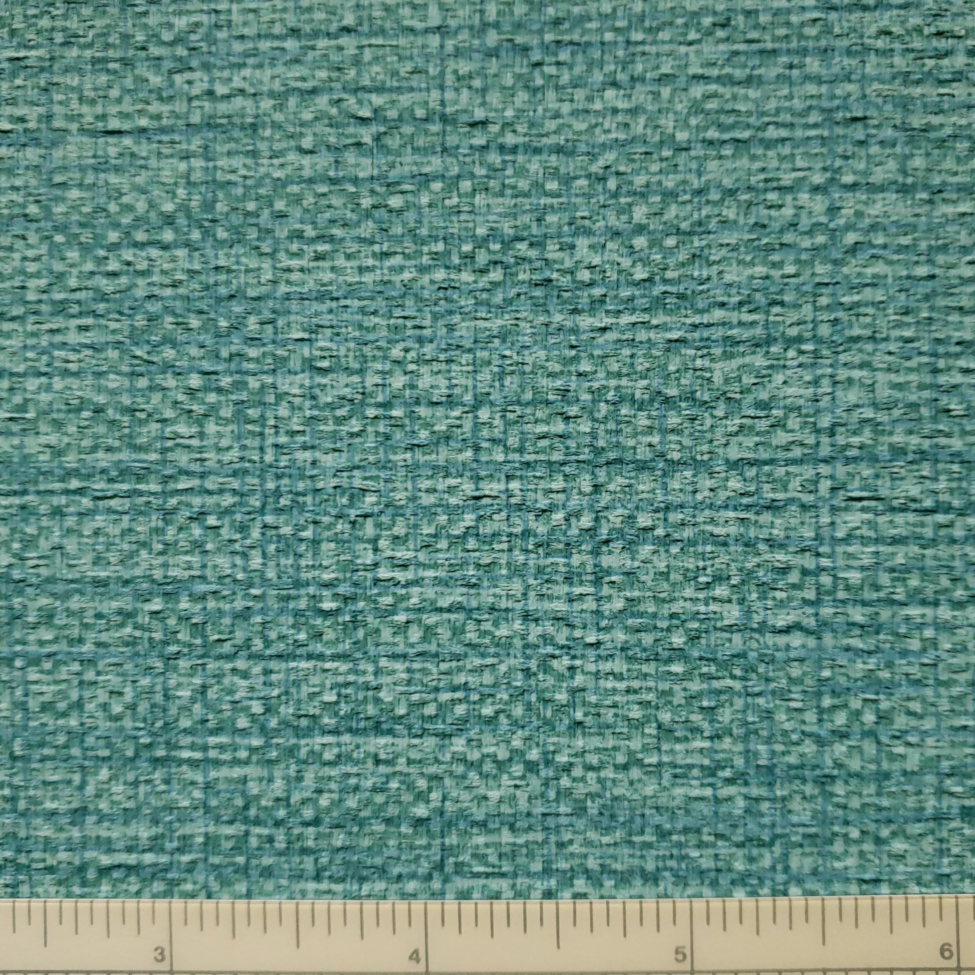 Matte finish on a multi-tone loosely woven pattern and texture in multiple shades of turquoise colors.